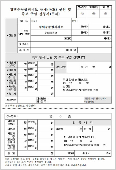 족보등재 안내문